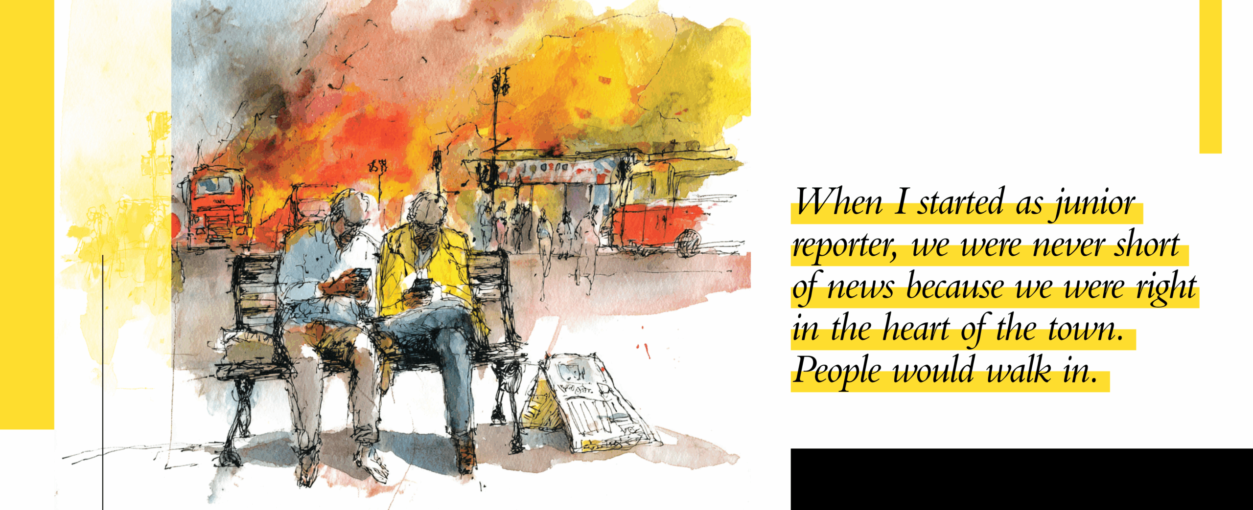 DP: When I started as junior reporter, we were never short of news because we were right in the heart of the town. People would walk in. On Thursday morning, you might not have a decent front-page lead, but by Thursday lunchtime, someone would walk in and give you your headline. I’d be in the local police station every morning having a cup of coffee with the chief copper, he told me what happened overnight. I’d bump into the local councillor, the local MP. When they came back from parliament on Thursday or Friday, they’d pop in and have a coffee in the newspaper office.