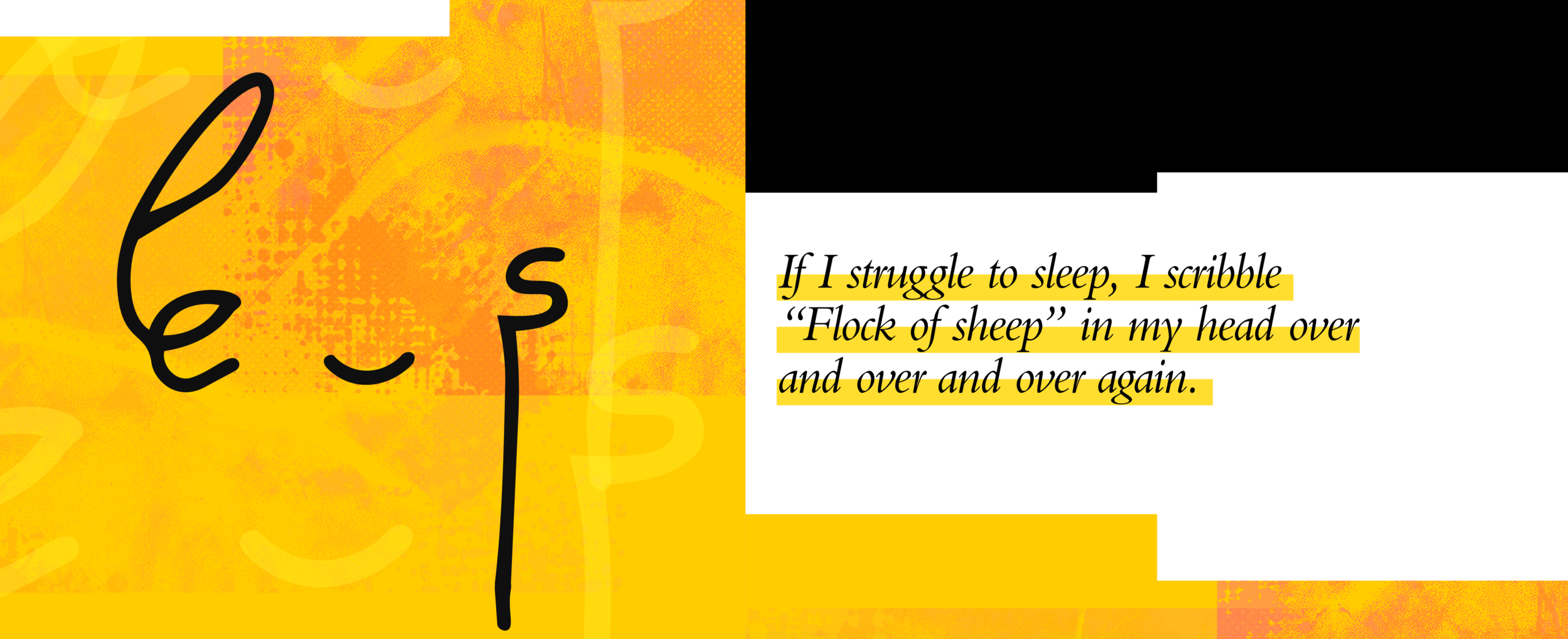 If I struggle to sleep, I scribble “Flock of sheep” in my head over and over and over again. It looks like this: