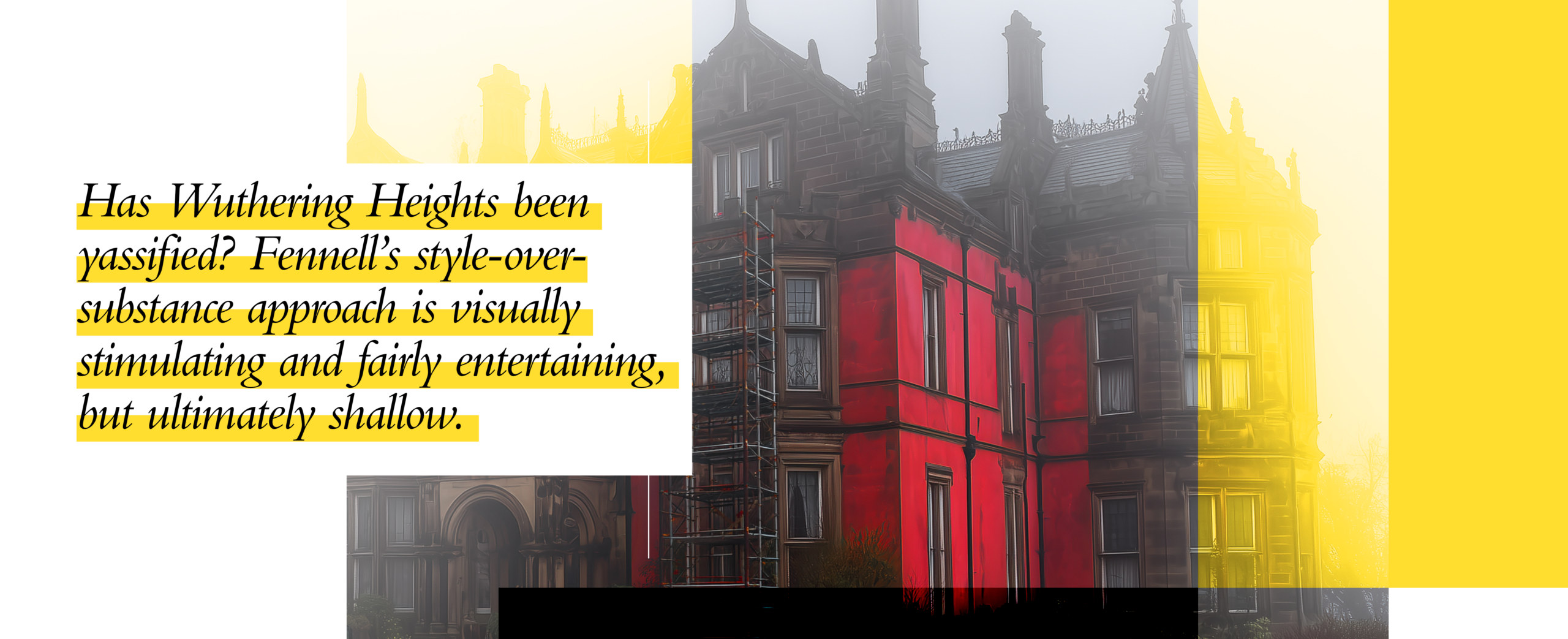 Cinema has enjoyed a long love affair with this dense, disturbing, complicated, enduring text. Every generation has its adaptation – one that captures the zeitgeist and speaks to the prevailing moods, trends, fashions and attitudes of the time. No wonder then, that our Wuthering Heights, or, sorry, “Wuthering Heights”, is so divisive. And dumb.